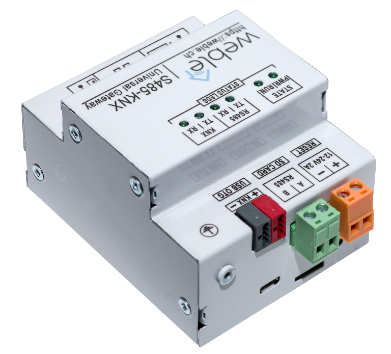 Same platform as the S485 but with one RS485 replaced by a native KNX twisted pair port. Connects directly to the KNX bus without an external KNX/IP router — the simplest setup for KNX integration.